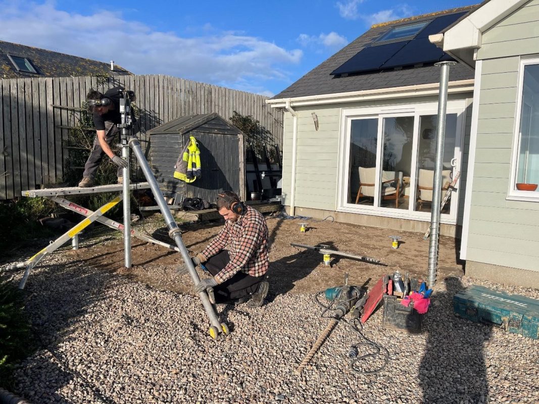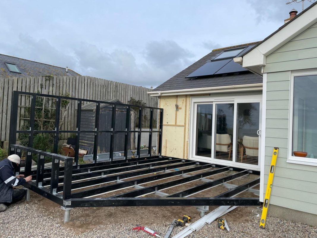 Instead of traditional concrete foundations, which extends the time it takes to build, we utilised ground screws to support the extension base. These are just as secure, but are much quicker.